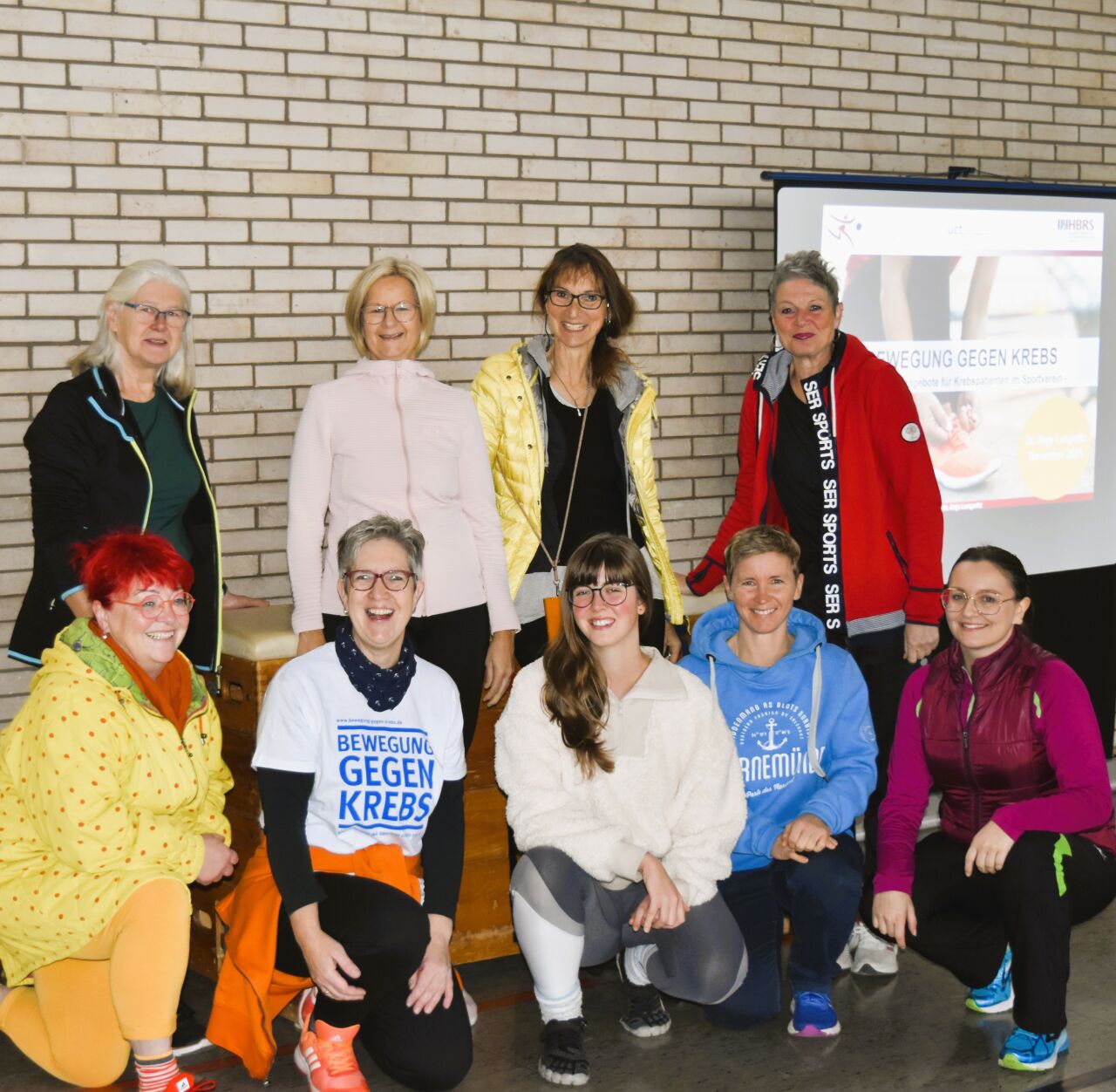 Übungsleiter aus Nah und Fern folgten der Einladung. „Sie waren dankbar ihr Wissen erweitern zu können, um mehr Sicherheit zu erlangen. Vor allem, weil auch in den Präventionssportgruppen der Sportvereine sowie in den Rehasportgruppen immer wieder Patienten mit einer Krebsdiagnose anwesend sind“, sagte Jaquet-Steinfeld. Neben Hintergrundinformationen zum Krankheitsbild Krebs standen Effekte körperlicher Aktivität nach der Krebsdiagnose und körperliche Funktions- und Leistungsfähigkeit onkologischer Patienten im Fokus der Fortbildung. Zudem wurden allgemeine Bewegungsempfehlungen vermittelt. Auch der praktische Teil kam nicht zu kurz. Die Teilnehmer konnten Übungen in Kleingruppen ausprobieren und nutzten dies zum regen Austausch.