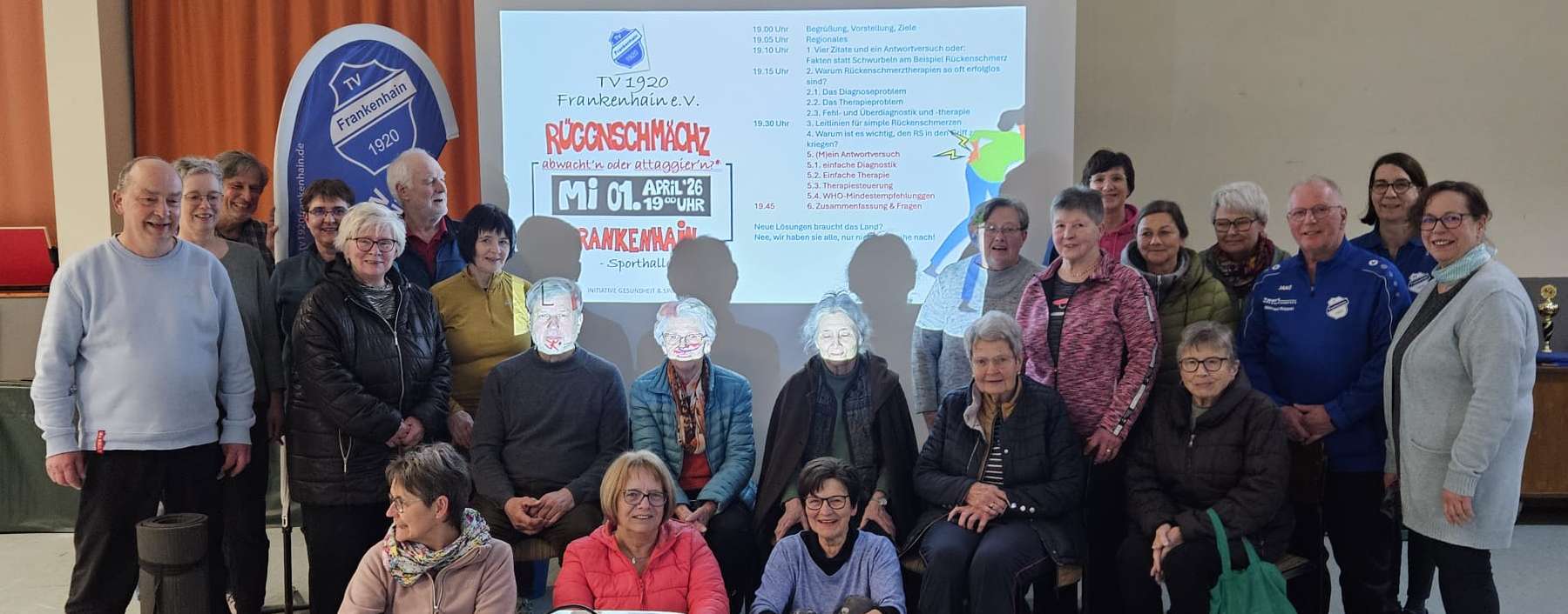Berkatal - Frankenhain und Frankershausen waren vor und nach Ostern die ersten beiden Stationen des Minikurses „Rüggnschmächz“. Der Sportkreis Werra-Meißner e.V. tourt mit seinem Gesundheitsreferenten, dem Physiotherapeuten Christian Burkert, durch den Landkreis von Sportverein zu Sportverein, um mehr Wissen und Bewegung ins alltägliche Gesundheitsverhalten zu bringen. Denn Rückenschmerz, und in der Folge Bewegungsmangel, steht bei den meisten Patienten in einem engen Zusammenhang mit einer großen Zahl nicht-ansteckender Erkrankungen, wie Diabetes 2, Herz-Kreislauf-Erkrankungen, Gelenkarthrosen usw.