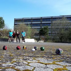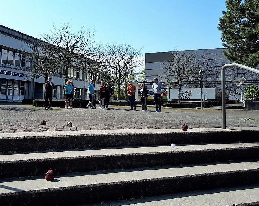 Die normalen Bocciakugeln werden durch kleine widerstandsfähige Säckchen ersetzt. Ziel ist es auch hier den Wurf so nah wie möglich an das kleine weiße Säckchen heranzubringen. Im Gelände gestaltet es sich natürlich schwieriger als auf einer geraden Fläche. Nicht immer ist das weiße Säckchen sichtbar oder es müssen Hindernisse überworfen werden. Diese neue Variante des Boccia macht das Spiel interessant und aufregend. Die Teilnehmer konnten Crossboccia Dank des schönen Wetters auf dem Schulhof testen und waren alle begeistert.