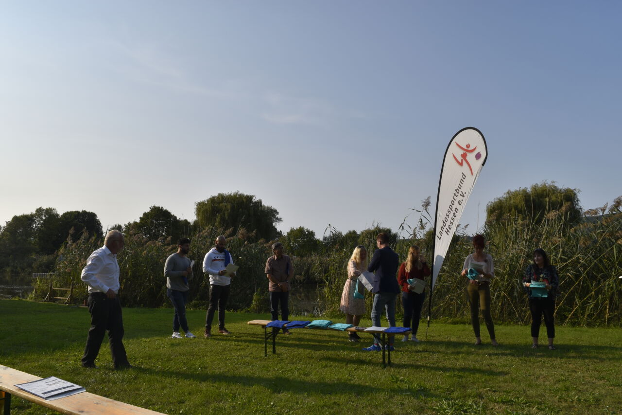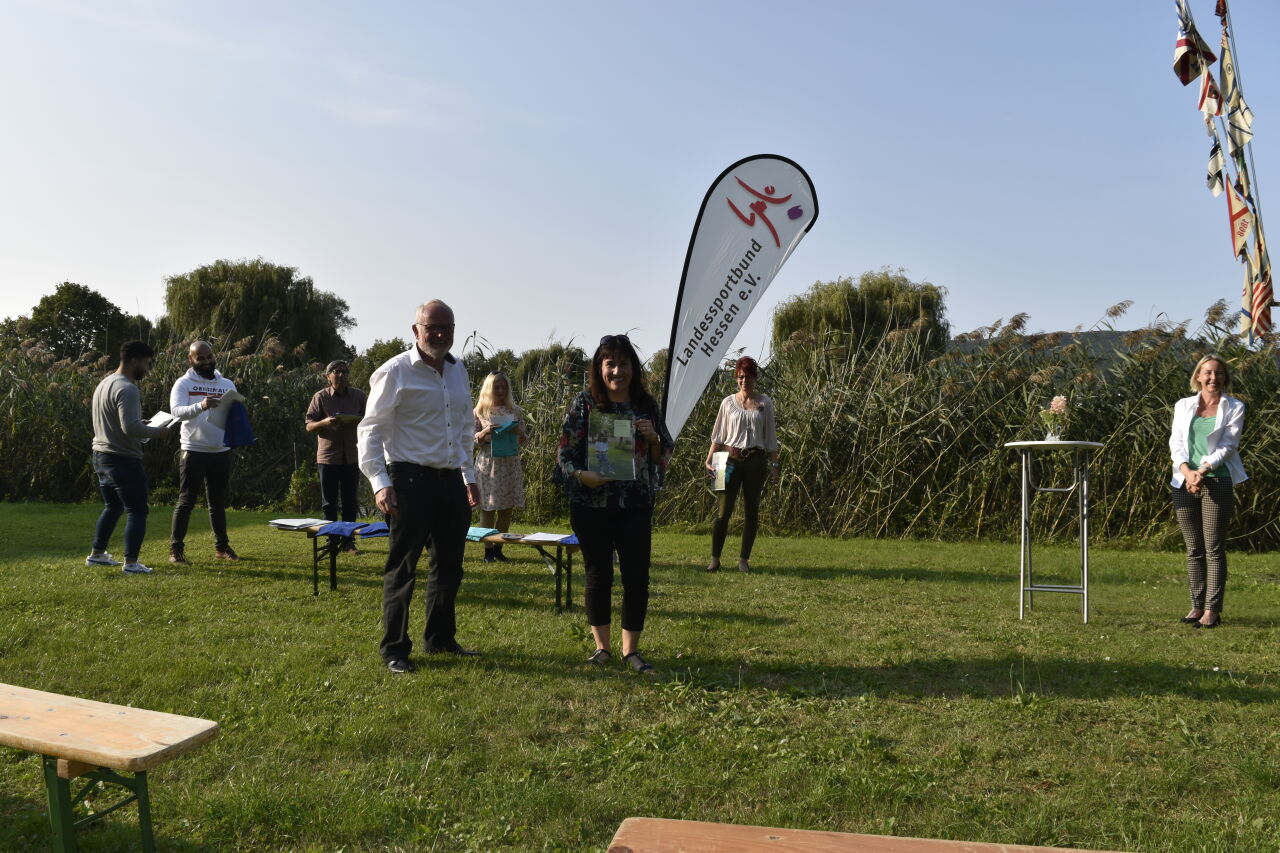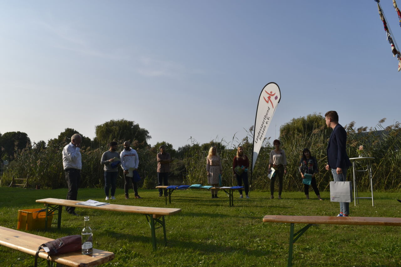 Unter den Augen des Landrats Stefan Reuß lobte der Sportkreis-Integrationsbeauftragte Edmund Pliefke die Zusammenarbeit aller Beteiligten: „Die Realisierung dieses Angebot war nur mit vielen vereinten Kräften möglich und das haben wir geschafft.“ Diana Bruch, die zuständige Prüferin des Landessportbund Hessen, blickte auf die gemeinsame Zeit zurück und gab eine wichtige Botschaft an die Absolventen weiter: „Sie sind nun auch wichtige Brückenbauer zwischen den Kulturen. Sie haben die besondere Chance weitere Menschen aus unterschiedlichen Kulturen und Nationalitäten in ihre Vereinsgruppen einzuladen, um die Vielfalt und interkulturelle Öffnung in Ihren Vereinsgruppen zu fördern und zu unterstützen.“