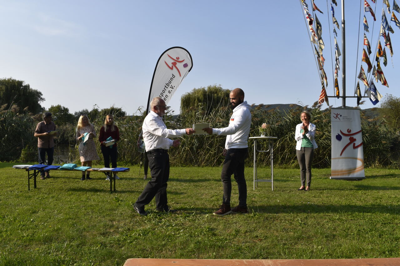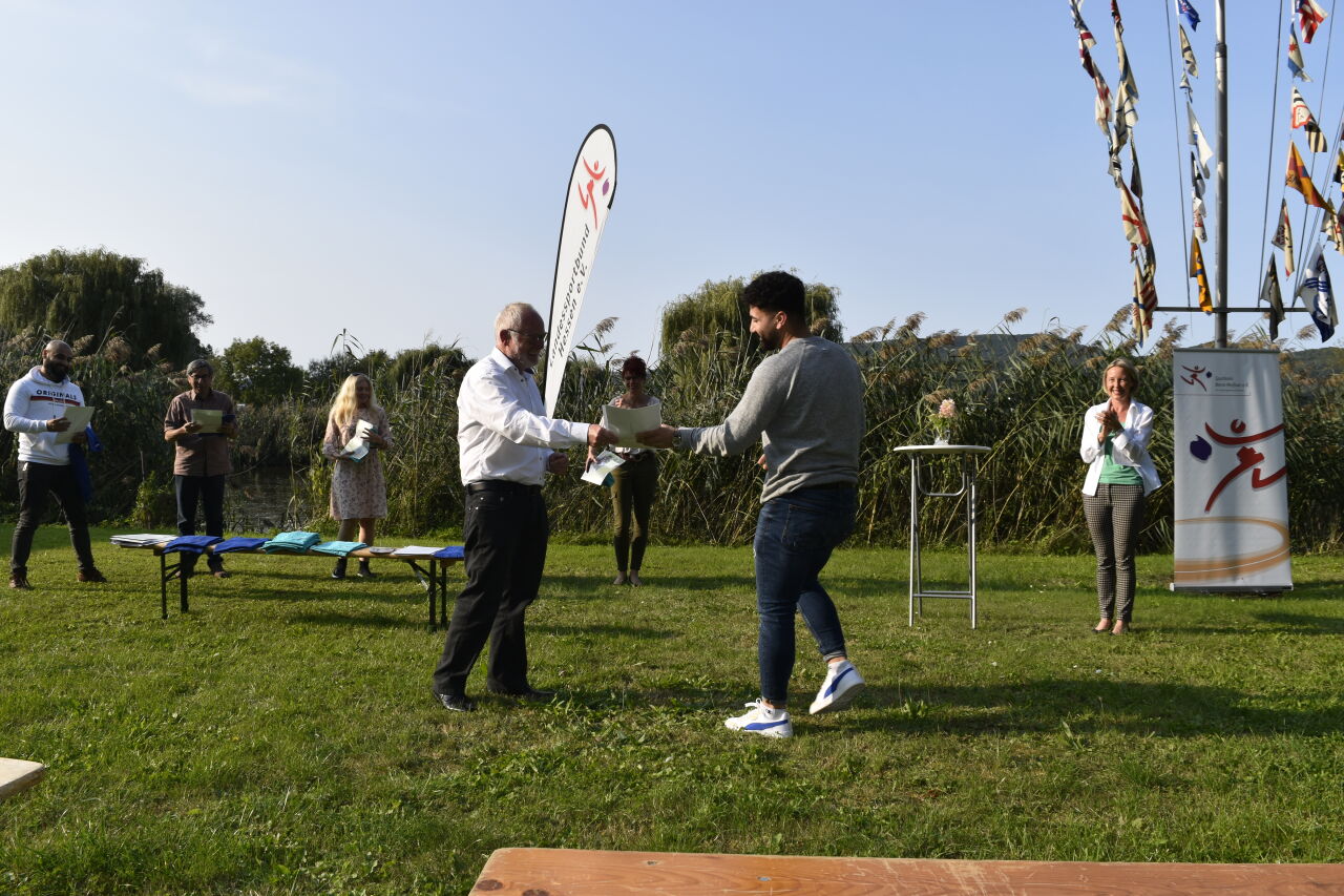 „Wir können nun das Erlernte weitergeben“, freut sich Boxtrainer Osman bei der feierlichen Übergabe der Übungsleiterlizenzen auf dem Gelände des Ruderverein Eschwege. Das einmalige Angebot wurde durch das Hessische Ministerium des Innern und für Sport in Form des Programms „Integration für Sport“ gefördert.